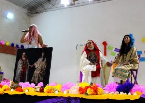 Unas 400 jóvenes adolescentes de distintos centros de estudios del nivel medio superior, y al día siguiente estudiantes universitarios y público en general, tuvieron la oportunidad de disfrutar de una puesta en escena en la que alrededor de la tradicional Ofrenda de Día de Muertos se encuentran Malintzin y Sor Juana, quienes guiadas por un diálogo de tres, con la fundadora Eva (¿o Lilith?), hacen un recorrido de su vida y obra para deconstruir sus historias marcadas por visiones machistas y parciales y revelar lo esencial de sus aportaciones al mundo del pensamiento, la cultura y el carácter histórico de las y los mexicanos.