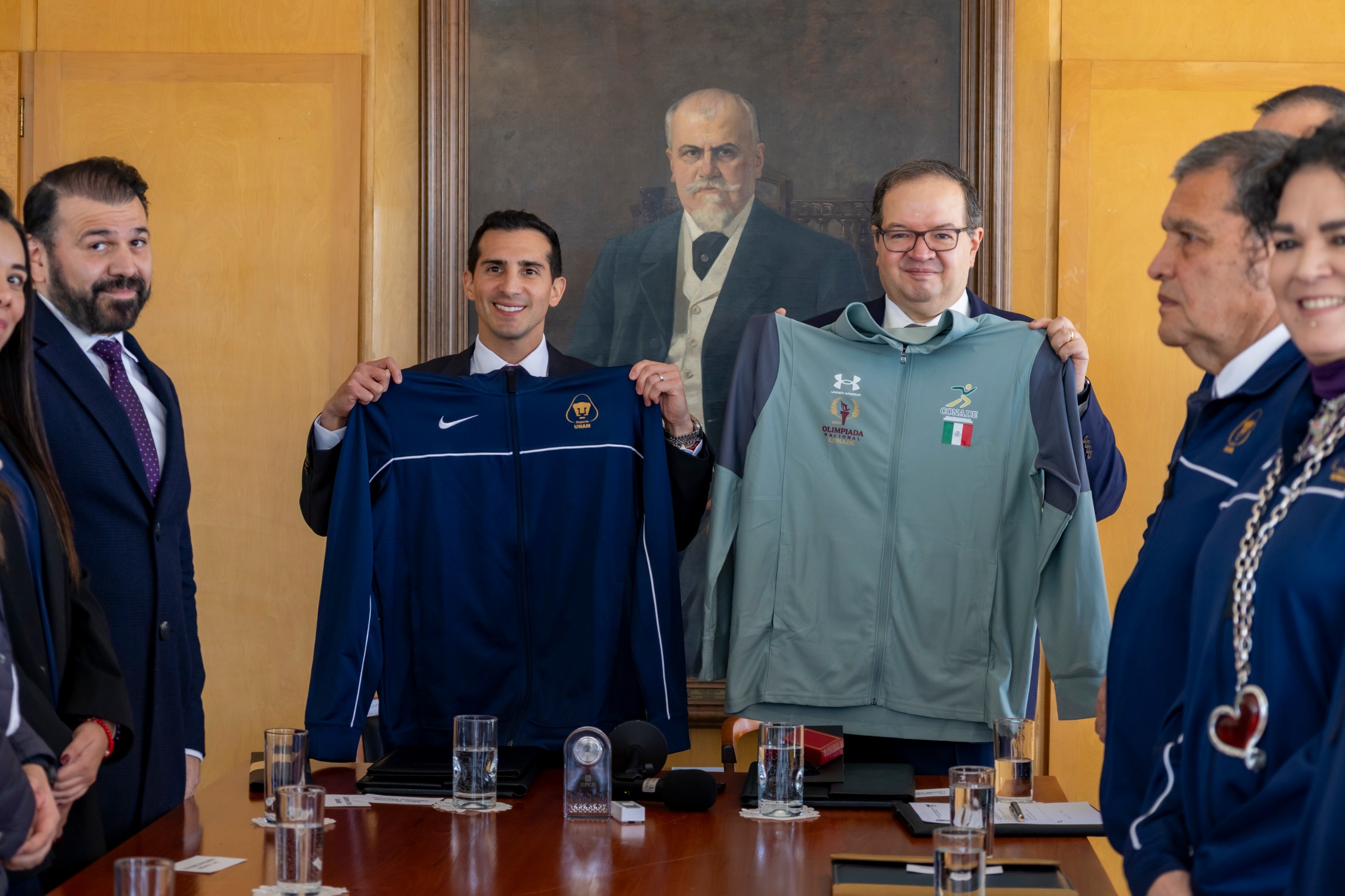 El director general de la Comisión Nacional de Cultura Física y Deporte (CONADE), Rommel Pacheco Marrufo, y el rector de la Universidad Nacional Autónoma de México (UNAM), Leonardo Lomelí Vanegas, firmaron este martes un convenio que buscará beneficiar a las y los estudiantes desde el ámbito deportivo.