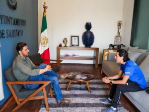 Manuel Gálvez, alcalde de Sahuayo, Michoacán, recibió en Palacio Municipal a Germán Torres, flamante ganador del Campeonato Nacional de Duatlón, quien pondrá en alto el nombre de México al competir en el World Triathlon Multisport Championships, a celebrarse en noviembre en Abu Dhabi, Emiratos Árabes Unidos.