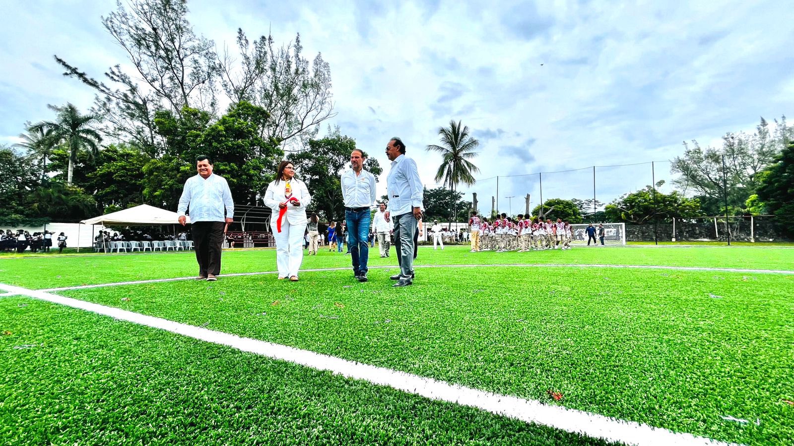El alcalde de Boca del Río, Juan Manuel Unánue Abascal, inauguró la nueva cancha de fútbol con pasto sintético en el Centro de Bachillerato Tecnológico Industrial y de Servicios (CBTIS) 79, en el marco de las actividades por el 50 aniversario de esta institución educativa.