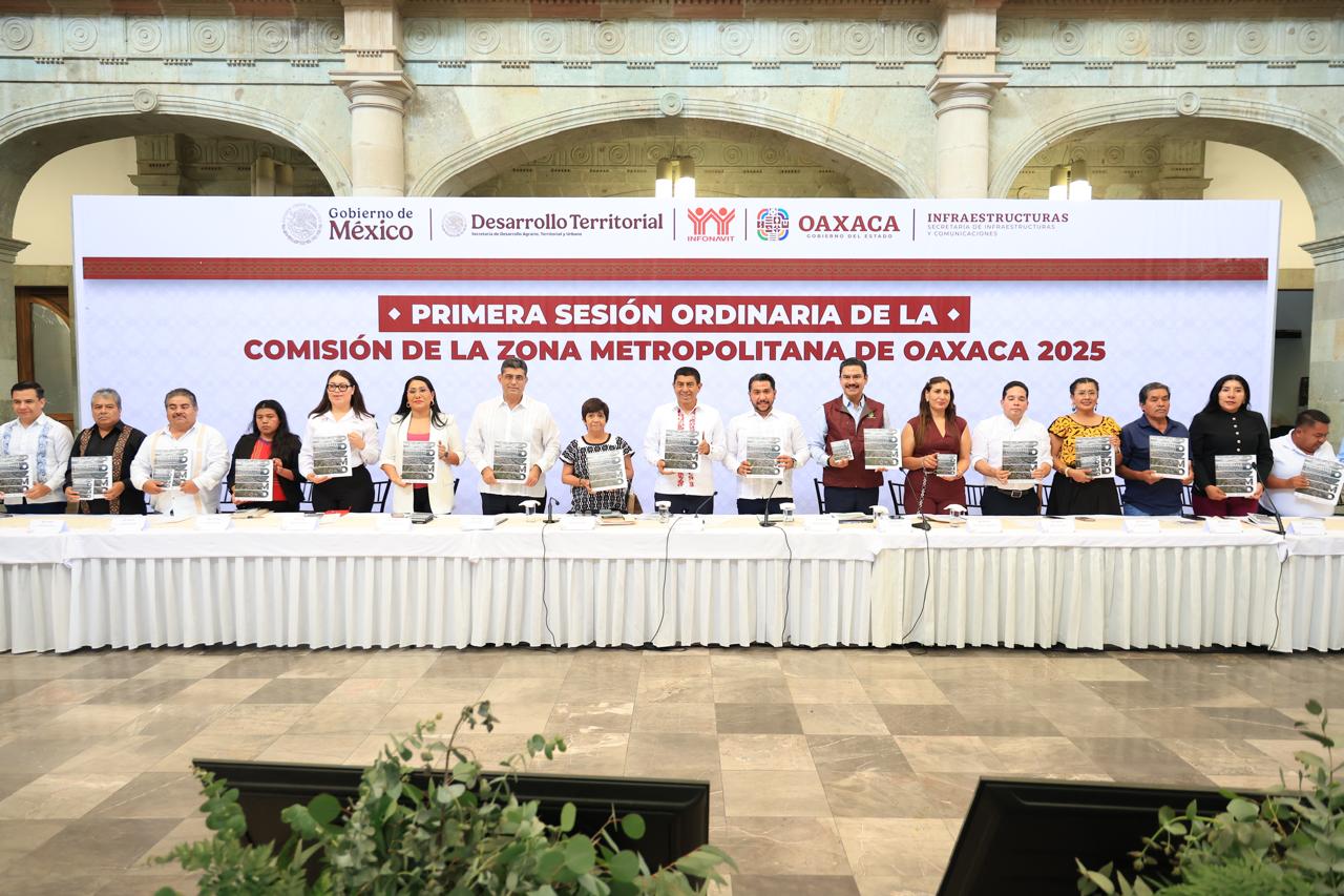 Al encabezar la Primera Sesión Ordinaria de la Comisión de la Zona Metropolitana de Oaxaca 2025, el Gobernador Salomón Jara Cruz destacó que este trabajo representa un paso histórico hacia un crecimiento ordenado, equitativo y sostenible en el que se armoniza la infraestructura, equipamiento y servicios con la protección de los recursos naturales y biodiversidad.