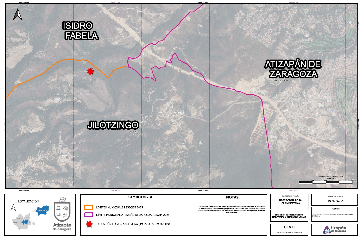 En relación al comunicado sobre la fosa clandestina encontrada en Jilotzingo, el Gobierno de Atizapán de Zaragoza informó qué, respecto a los referentes geográficos y reportes oficiales, el punto de hallazgo no se encuentra dentro de nuestro territorio municipal, sino a 700 metros lineales respecto al límite territorial con Jilotzingo.