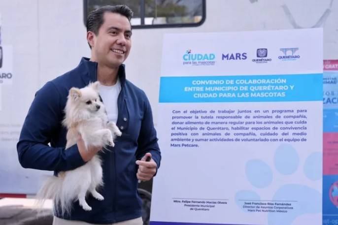 El alcalde de Querétaro, Felifer Macías, asistió a la jornada de esterilización en el auditorio del Centro de Desarrollo Comunitario de Cerrito Colorado, en donde firmó un convenio entre el municipio de Querétaro y Ciudad de las mascotas, un programa de la empresa Mars Petcare México, para impulsar acciones para fomentar el cuidado responsable de los animales de compañía y promover su convivencia positiva en los espacios públicos.