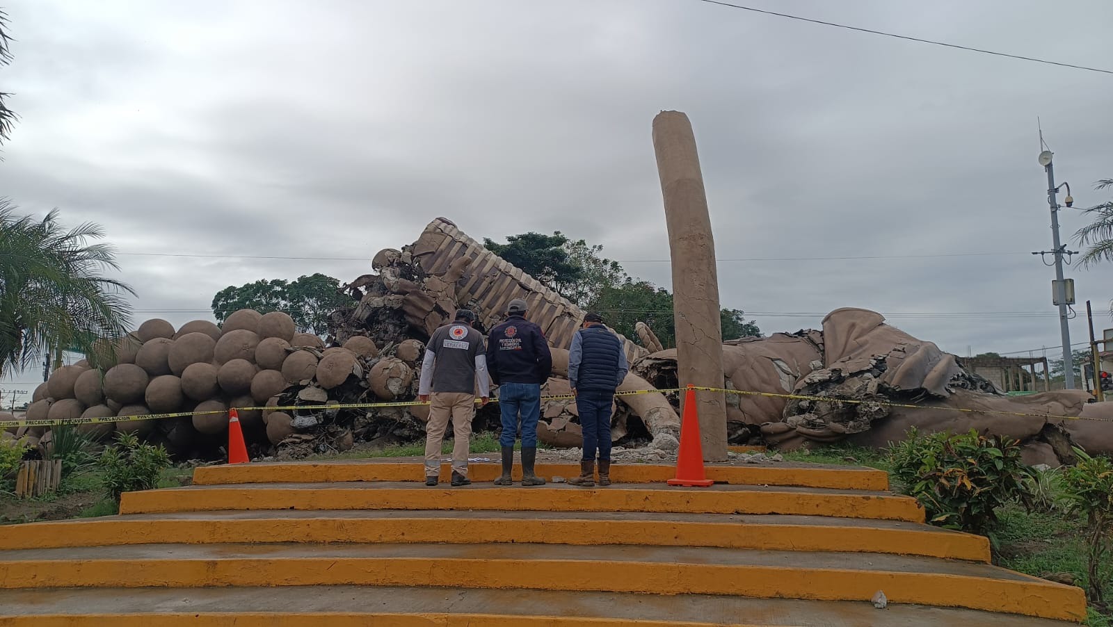 El monumento El Colotero, ubicado en el municipio de Álamo Temapache, colapsó. La estructura quedó derribada y con daños visibles en la figura del campesino y la canasta de naranjas que integraban la obra.