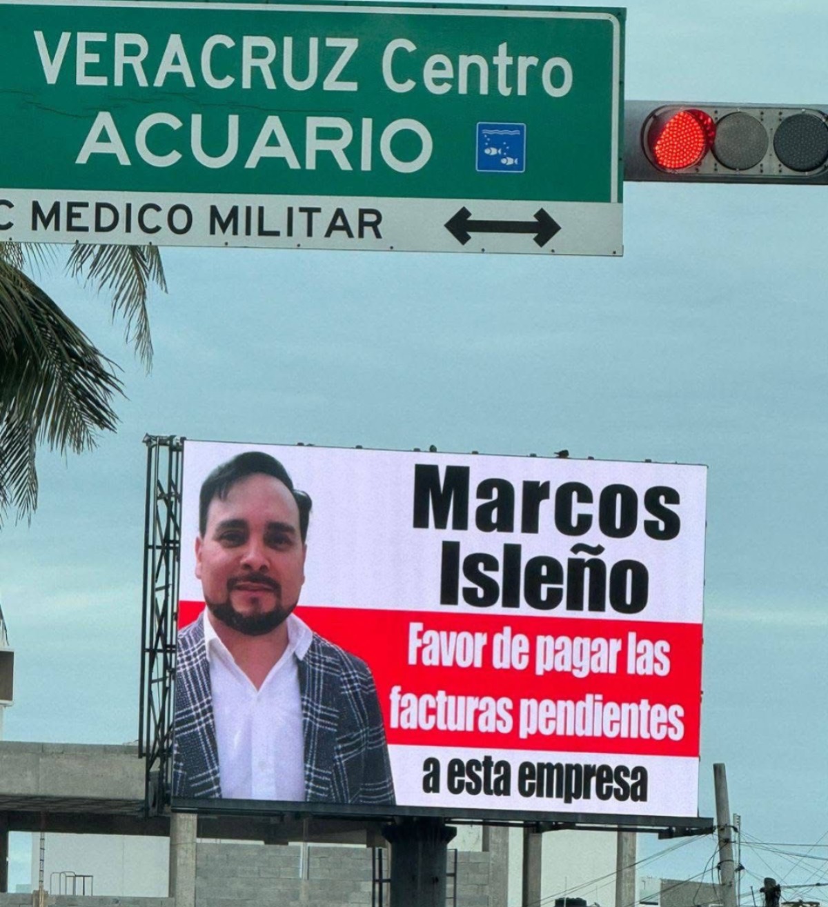 Una empresa de publicidad decidió cobrar los adeudos al exalcalde de Medellín de Bravo, Veracruz, Marcos Isleño, exhibiéndolo en enormes espectaculares colocados en los municipios de Veracruz y Boca del Río.