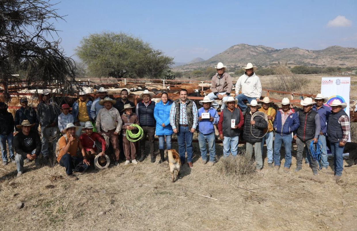 El Presidente Municipal de Colón, Gaspar Trueba Moncada, presidió la jornada de vacunación de ganado bovino en el Ejido El Zamorano, con el objetivo de mejorar la salud y la sanidad del ganado bovino de los productores y aumentar la productividad.