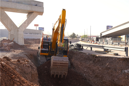 De manera paralela, se realizan trabajos de cimbrado y colado de columnas, construcción de áreas de retorno, colocación de muros de tierra armada en las rampas, así como la conversión de la línea eléctrica de media tensión de aérea a subterránea, acciones que permitirán continuar con el desarrollo integral de la obra.