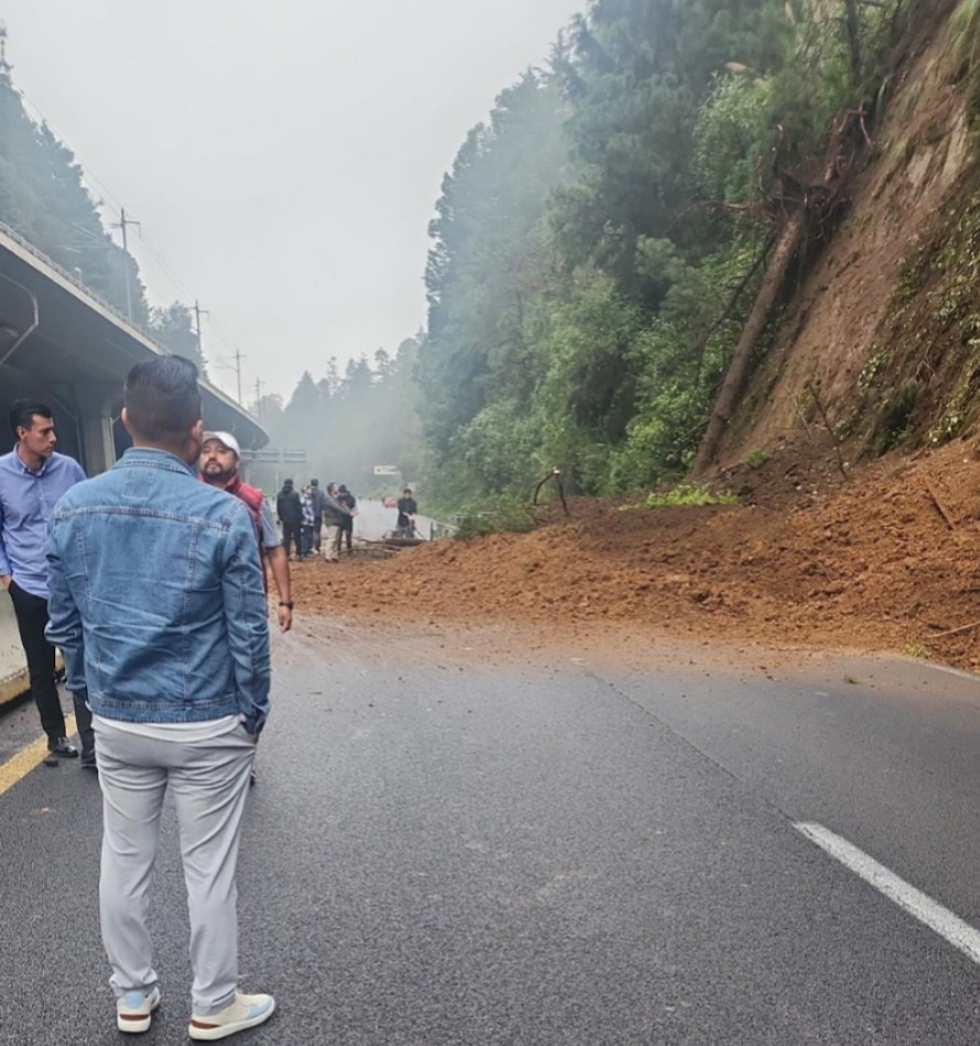“La @SS_Edomex mediante el #C5 informa: #CierreVial sobre la Autopista México-Toluca, derivado de un #Deslave registrado cerca de la caseta de cobro La Venta, Cuajimalpa dirección CDMX”, publicó la dependencia en su cuenta de X.