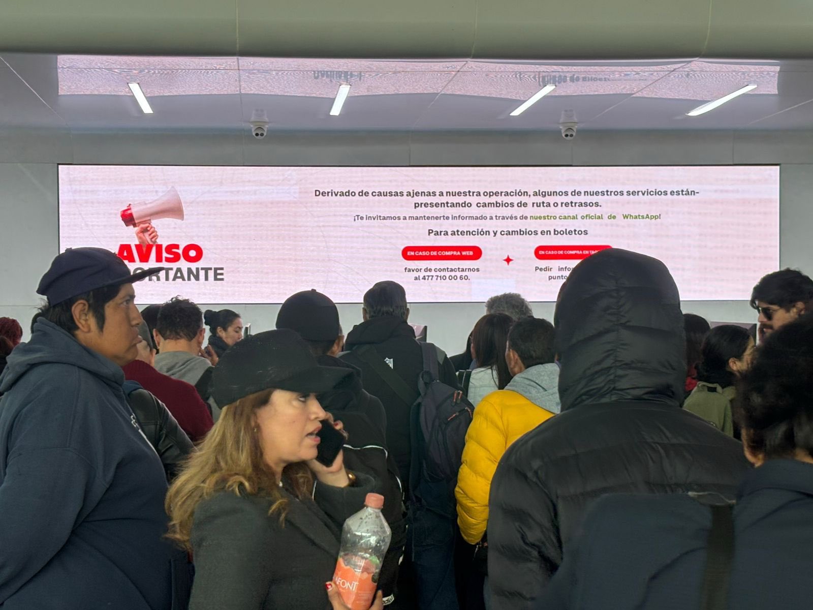 Además, en la línea Primera Plus, que tiene corridas a Guadalajara y Michoacán, aparece un mensaje en la pantalla que explica el cambio de rutas o atrasos en las salidas del servicio. En esta línea hay una aglomeración de pasajeros importante.