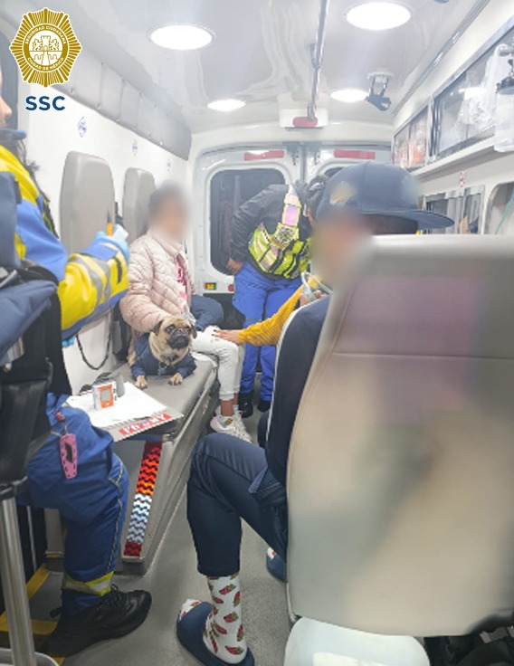 Posteriormente, paramédicos del Escuadrón de Rescate y Urgencias Médicas (ERUM) brindaron atención a las dos mujeres y al ciudadano, y al observar que dos perritos Pug, uno negro y otro amarillo, tenían dificultad respiratoria, les colocaron máscaras de oxígeno y les otorgaron primeros auxilios.