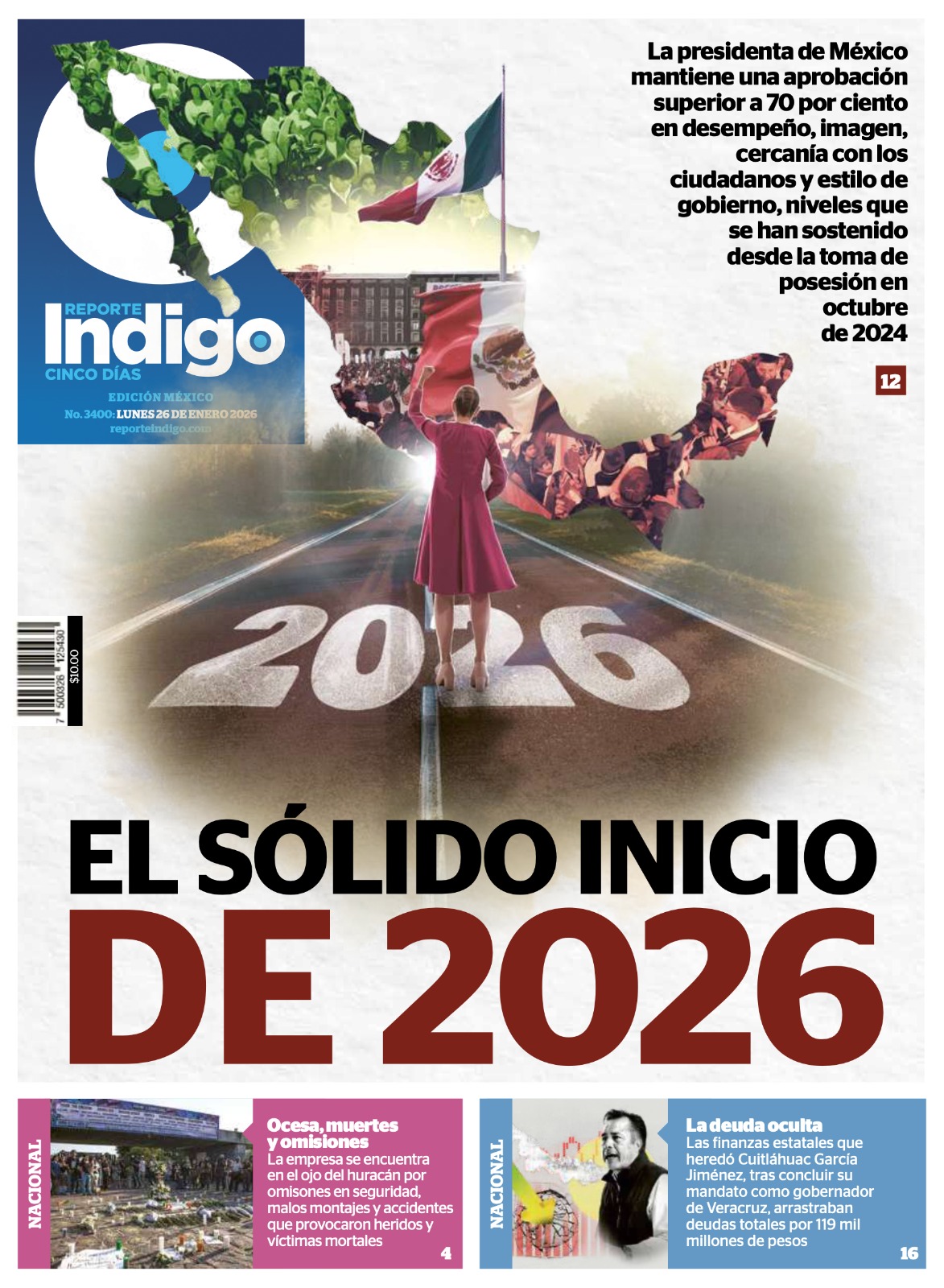 La presidenta Claudia Sheinbaum inició 2026 con un nivel de aprobación de 77.5 por ciento, de acuerdo con la más reciente encuesta nacional elaborada por FactoMétrica y Reporte Índigo. El estudio se aplicó entre el 19 y el 22 de enero y refleja un aumento respecto al cierre de 2025, al consolidar el respaldo de más de siete de cada diez mexicanos a su gestión.