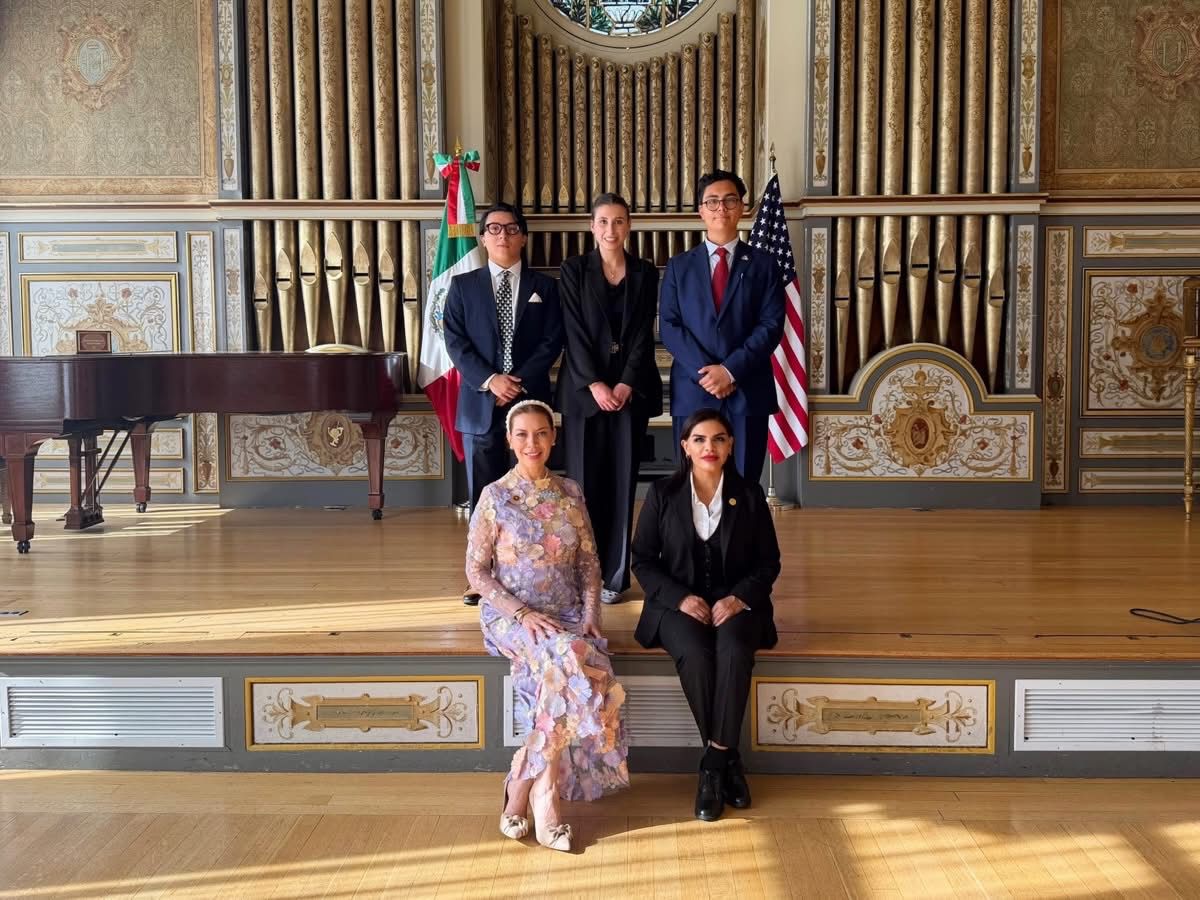 La delegación estuvo integrada por Elizabeth, Iker y Santiago, quienes participaron en una jornada académica y diplomática en la capital estadounidense. Durante la visita estuvieron acompañados por las Diputadas Federales Luz María Rodríguez y Selene Ávila Flores, con el objetivo de acercar a los estudiantes a espacios relevantes del sistema jurídico y diplomático de ese país.