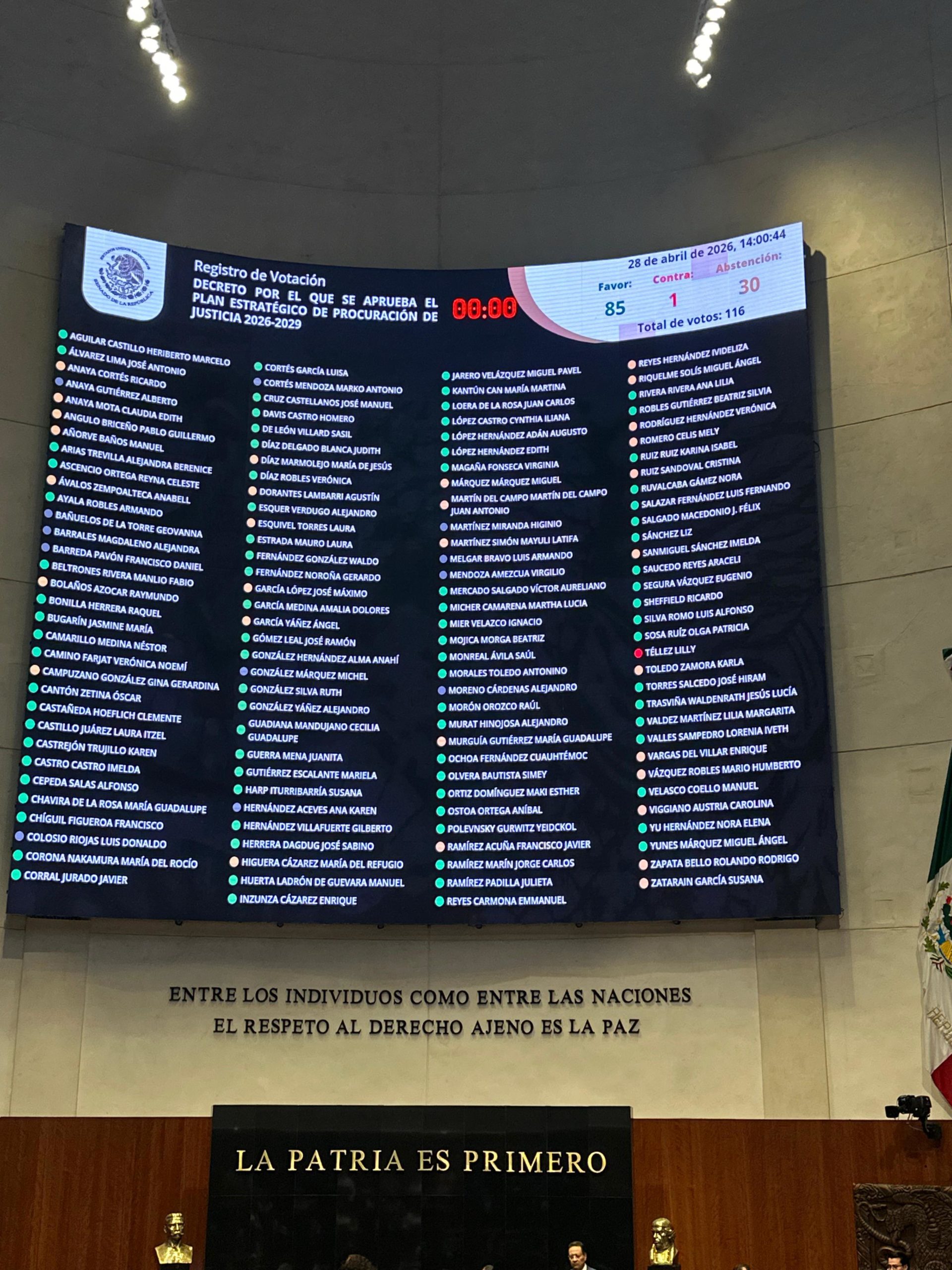 Con 85 votos a favor, uno en contra y 30 abstenciones, el documento se remitió a la titular del Ejecutivo Federal para su publicación en el Diario Oficial de la Federación (DOF).