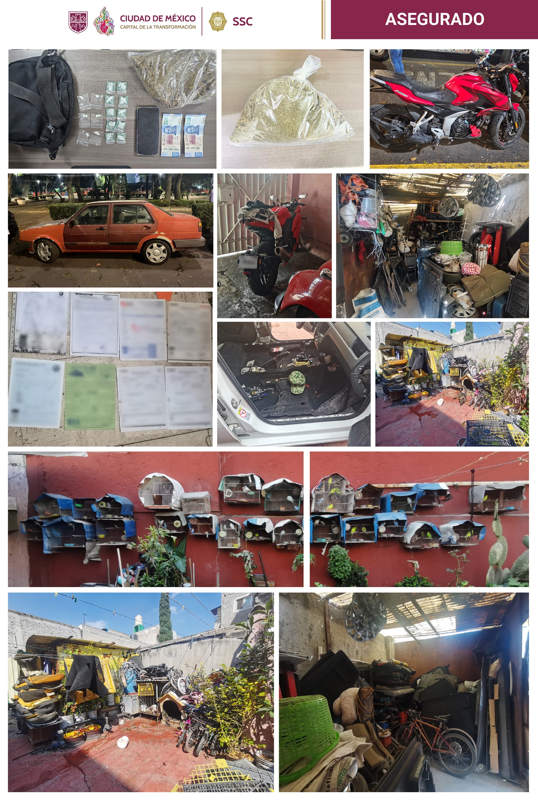 Durante la diligencia, los agentes aseguraron un automóvil color blanco, presuntamente propiedad del occiso; una motocicleta; tres vehículos de distintos colores y aproximadamente dos toneladas de autopartes, todos puestos a disposición del Ministerio Público. En el lugar también quedaron bajo resguardo cinco perros y más de 50 aves y peces, en tanto continúan las investigaciones.