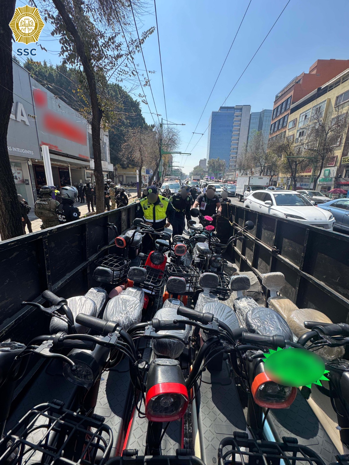 En un operativo conjunto, personal de la Secretaría de Seguridad Ciudadana (SSC) de la Ciudad de México respaldó a la Secretaría de Administración y Finanzas (SAF) y a la Coordinación Ejecutiva de Verificación de Comercio Exterior (CEVER) en el aseguramiento de más de 100 vehículos eléctricos de procedencia extranjera sin documentación que acreditara su legal estancia en el país. Las acciones se llevaron a cabo en la colonia Centro, alcaldía Cuauhtémoc.