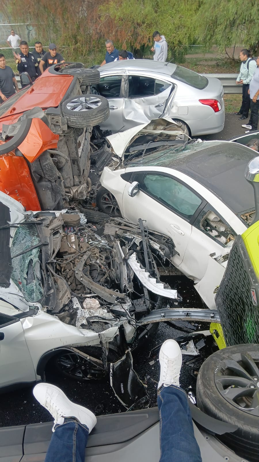 Una persona muerta y al menos cinco lesionados es el saldo que dejó un choque múltiple en el kilómetro 36 del Circuito Exterior Mexiquense, con dirección hacia Puebla.